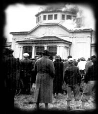 Kristallnacht. The burning of a Jewish synagogue in Nazi Germany, November 9 - 10, 1938